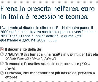 Quest’ oggi Il Sole 24 ORE – come tutti i principali quotidiani  – scrive che l’Italia è ufficialmente entrata nella fase di recessione.