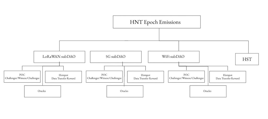 Introducendo in questo modo anche subDAO e subNetwork che saranno basate su specifici protocolli di telecomunicazione decentralizzati (LoRaWAN, WiFi, 5G, CDN, VPN — denominati Decentralized Network Protocols o DNP) , ognuno dei quali vivrà di vita propria all’interno del proprio network (ad esempio l’attuale network LoRaWAN diventerà una subDAO LoRaWAN).